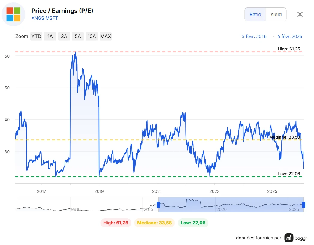 À titre personnel, je regarde souvent le PER actuel comparé au PER médian des 10 dernières années. Médian veut dire que 50% du temps la période le ratio était au dessus, et 50% du temps en dessous. Je le préfère très largement à la moyenne historique que je trouve moins représentative.