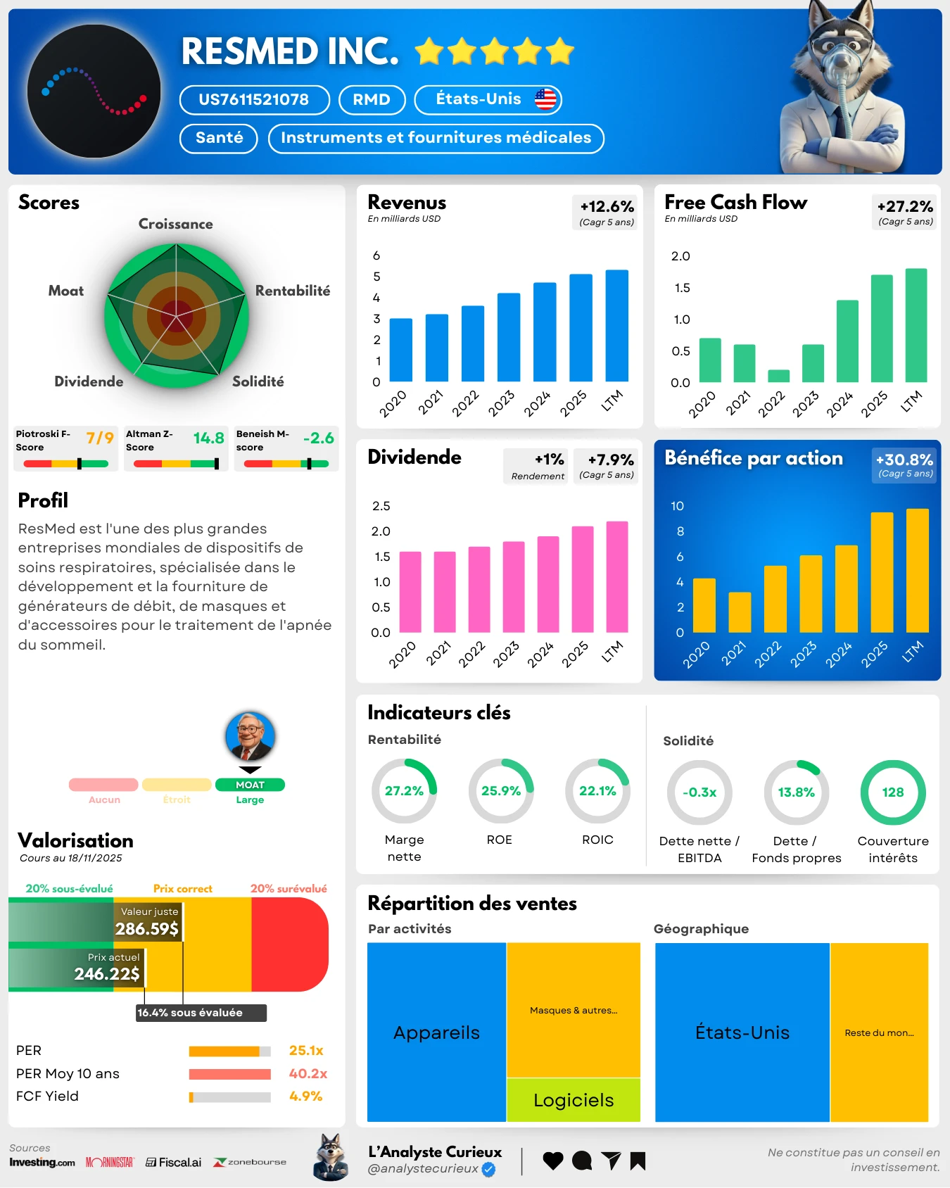 ⭐J’ai attribué à Resmed une note fondamentale de 5 étoiles (sur 5).